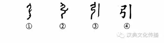 這是“引人人勝”的“引”字,是個指事字。①是甲骨文的形體,是一張大弓。弓背上有一小畫作為指示符號,表示是引弓之處。②是金文的形體,與甲骨文相類似。③是小篆的形體,將原來弓背上的一小畫變為獨立的一豎畫。④為楷書的寫法。