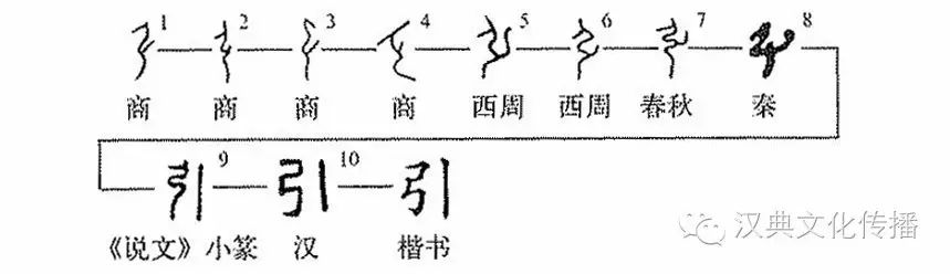 指事字。甲骨文“引”字從弓、從丿,“丿”表示引弓。兩周文字承襲商代文字?!墩f文》篆文“引”字所從的“丿”變為一豎,為隸楷“引”字所本。《說文》:“引,開弓也。”本義是開弓。《莊子·田子方》:“列御寇為伯昏無人射,引之盈貫。”引申有延長、長久義。《爾雅·釋詁上》:“引,長也。”甲骨文習見“引吉”,義為長吉。《易·萃》六二:“引吉,無咎。”毛公鼎“皇天引厭厥德”(皇天將長久地飽享您的恩德)與《書·洛誥》“萬年厭于乃德”義同。又通“矧”,副詞。毛公鼎:“無唯正聞,引(矧)其唯王智(知)。”(連正常(道理,事情)都不知道,王還能知道什么?)(徐在國)