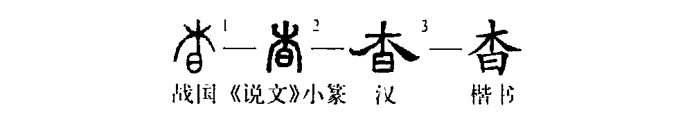 這就是“杳無音訊”的“杳(yǎo)字。一看形體,就知道字義的大概。你看甲骨文①的上部是樹木,根部是“日”(太陽),表示太陽已經落下去了,這就是“幽暗”的意思。所以“杳”字是個會意字。小篆②的形體與甲骨文相仿佛,上“木”下“日”。楷書③也相似。