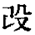 ,由蛇形變成近似于跪跽的人形;攴旁也有“又”下加飾筆者。當(dāng)時(shí)最主要的變化還是聲旁巳改作己(同為之部),這樣改就正式從攺字中分離出來,不再具有同形字關(guān)系。《古文四聲韻》所載從己聲的改在當(dāng)時(shí)是罕見的,但取得主流地位,為《說文》肯定而行用至今。楷書作改,是小篆的筆勢(shì)變化。或從殳作