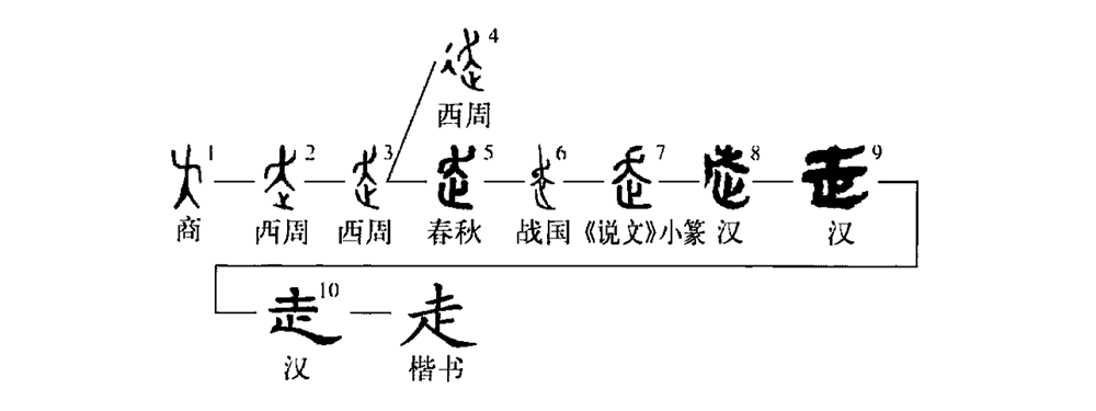 ,小篆“走”字從“夭”,乃形體之訛變。據(jù)古文字學家研究,小篆以前沒有