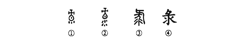 這個“彔”字本為象形字。甲骨文①就像轆轤在井中吊水的樣子,在吊斗之下還有水下滴。②是金文的形體,與甲骨文基本相似,但其下部又增加了水點的數量。③是小篆的形體,不像汲水的吊斗之形了。④為楷書的寫法。