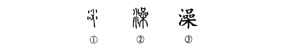 “澡身浴德。”這個“澡”字,本為會意字。①是甲骨文的形體,中間是一只右手之形,其中的六個小點像水,表示用水洗手的意思。②是小篆的形體,變成了“從水喿聲”的形聲字了。③是楷書的形體。