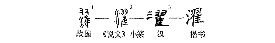 也。”《詩•大雅•泂酌》:“泂酌彼行潦,挹彼注茲,可以濯罍”毛傳:“濯,滌也。”引申為清洗、袪除等義。又,《爾雅•釋詁上》:“濯,大也。”《詩•大雅•常武》:“濯征徐國。”毛傳:“濯,大也。”又,用過的臟水。《廣雅•釋器》:“潲、濯,滫也。”王念孫疏證:“臭汁亦謂之滫,亦謂之潲,亦謂之濯。”《儀禮•士喪禮》:“渜濯棄于坎。”(王逸鶴)