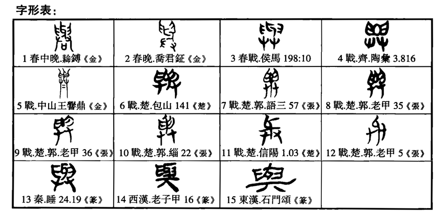【注釋】①黨與:朋群。②從舁從與:《段注》:“會意,共舉而與之也。”朱駿聲曰:“按:與聲。”按:當(dāng)從朱氏之説。舁為共舉,引申有衆(zhòng)意,故訓(xùn)黨與。